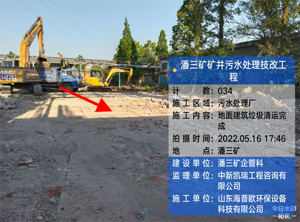 工程名稱:潘三礦礦井水處理技改工程      氣溫:28-14°  天氣:晴